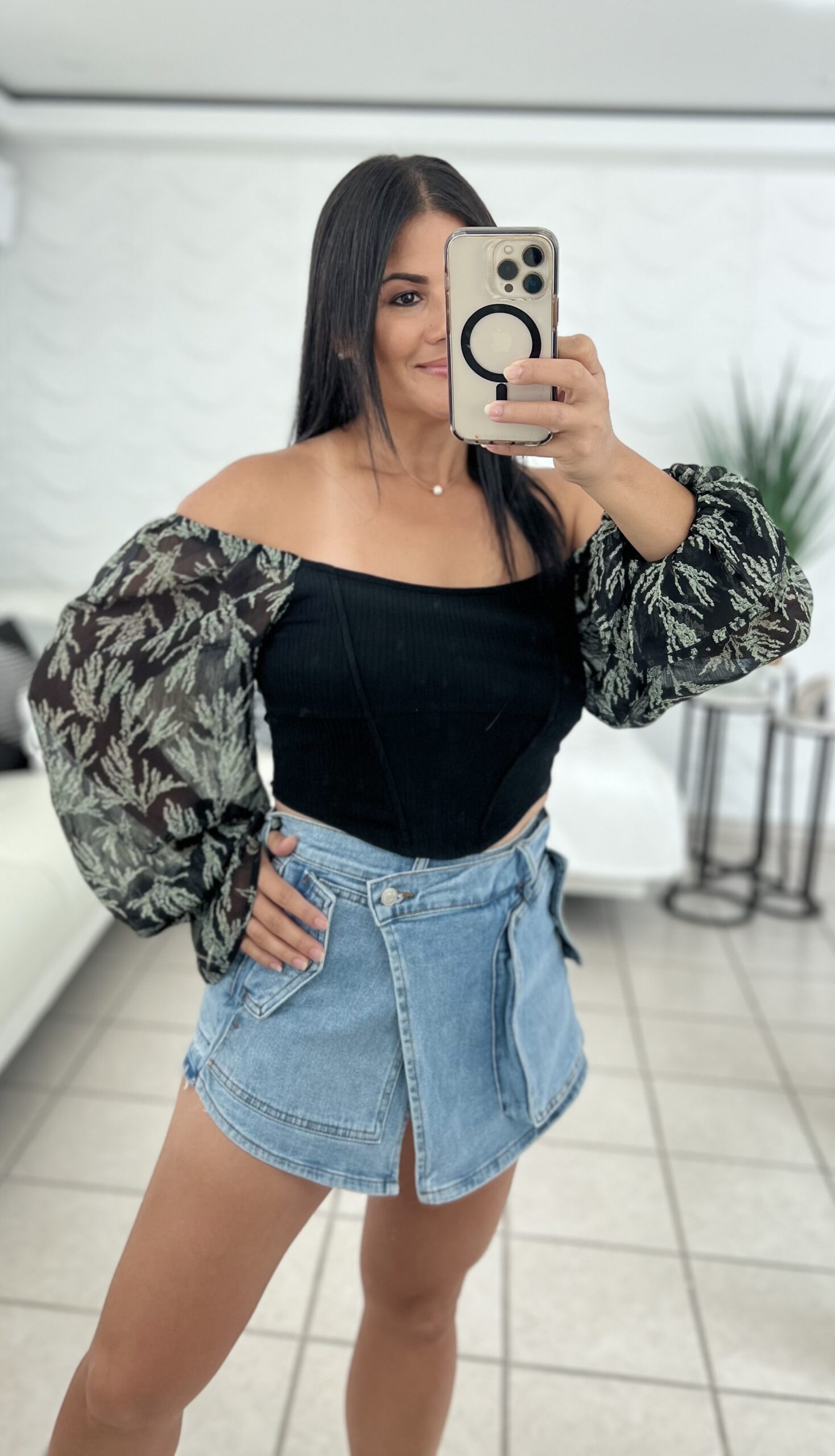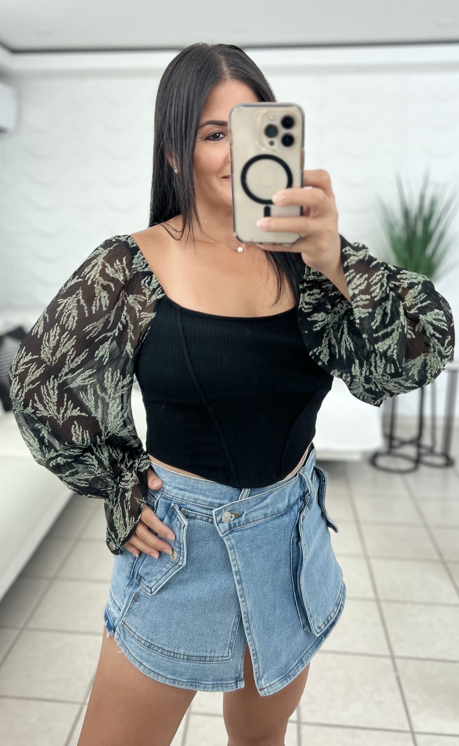 CROPPED BUBBLE SLEEVE TOP